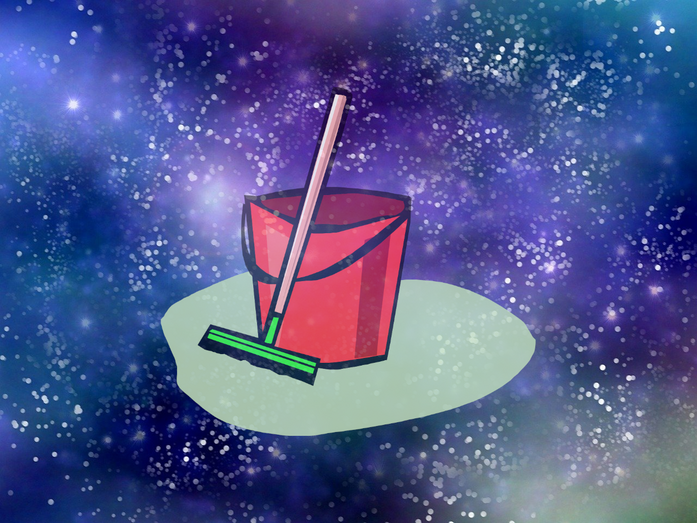 Jonas ist fertig mit Putzen. Sogar der Boden glänzt.